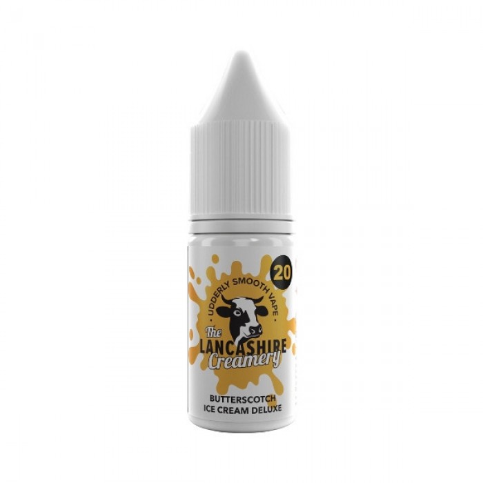 The Lancashire Creamery - Nic Salt - Butterscotch Ice Cream Deluxe - A blend of indulgent flavours. Rich, buttery butterscotch pairs perfectly with a smooth vanilla ice cream base, delivering a decadent, creamy vape with every puff.